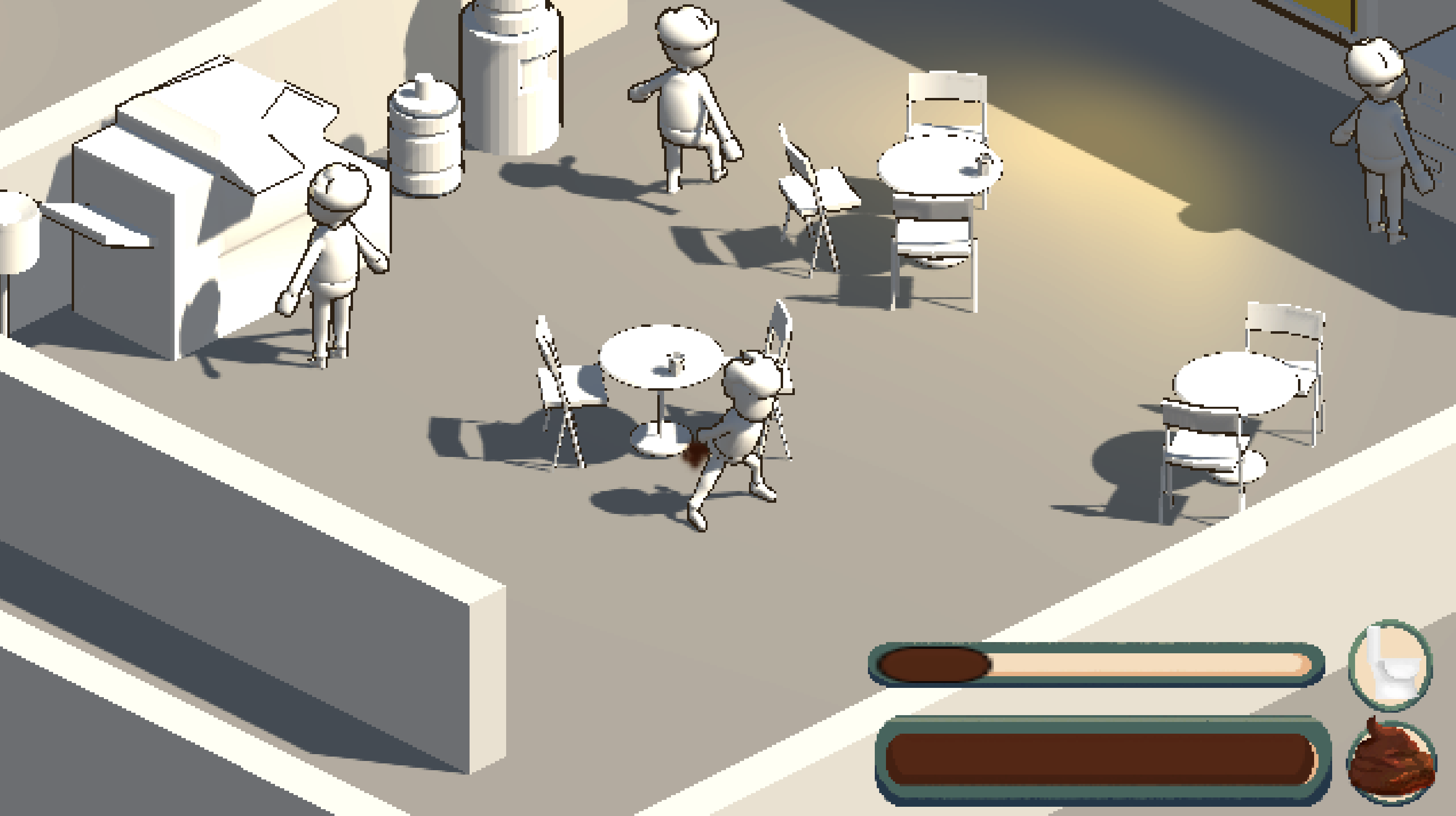 Poop: Spacebar (Hold near "Toilet")